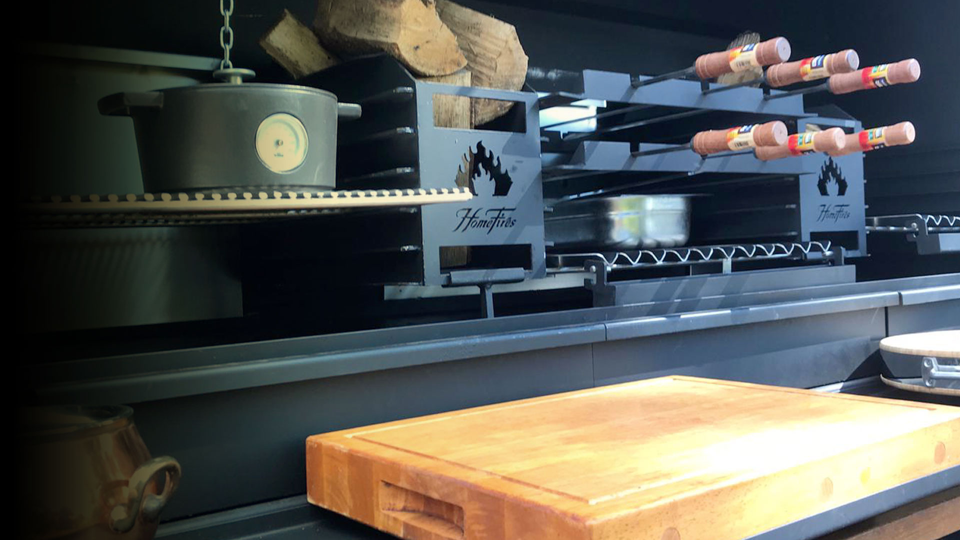 Dutch designer Piet-Jan van den Kommer sought a creative and multifunctional solution for combining a garden boundary with an outdoor kitchen. The ideal combination of practicality and outdoor fun. That was the point of departure for the design of Wall With Other Objects (WWOO), an outdoor kitchen made of concrete. A concept that’s popular worldwide. Naturally an outdoor kitchen is incomplete without a braai. Comfort Trade developed an adapter for the Home Fires Built-In Braai 1200 especially for WWOO. This means everyone choosing a WWOO outdoor kitchen can enjoy the surroundings, good company and delicious food from the braai to the utmost.